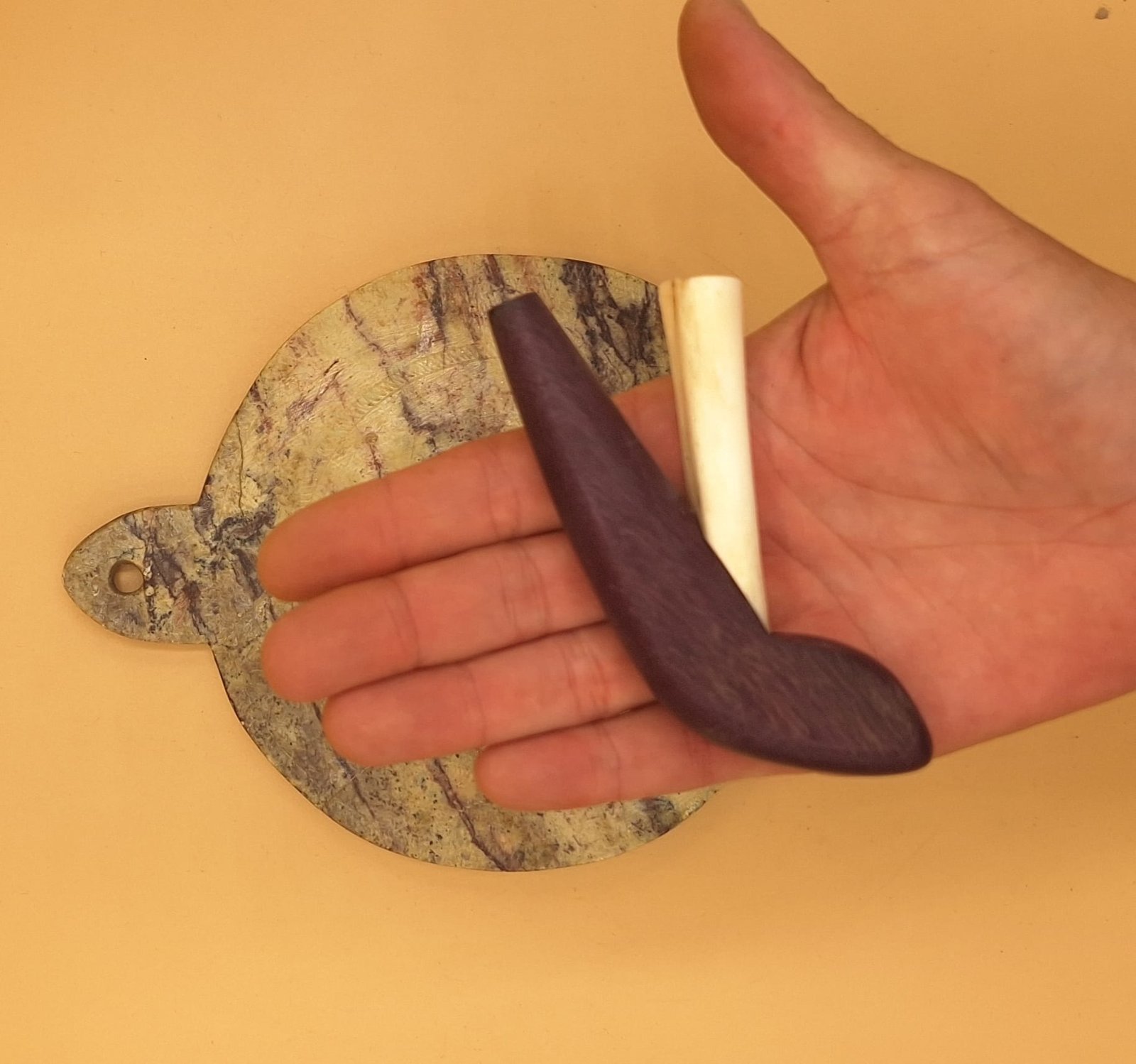 Kuripe muy masculino extra grande de madera y hueso. La artesanía de esta pieza es excepcional. Este kuripe es para las personas que prefieren una fuerte entrega de su rapé.