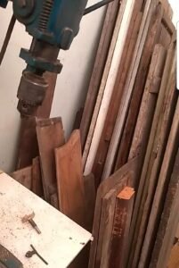 Tres piezas de madera restaurada firmemente encoladas y bien acabadas.