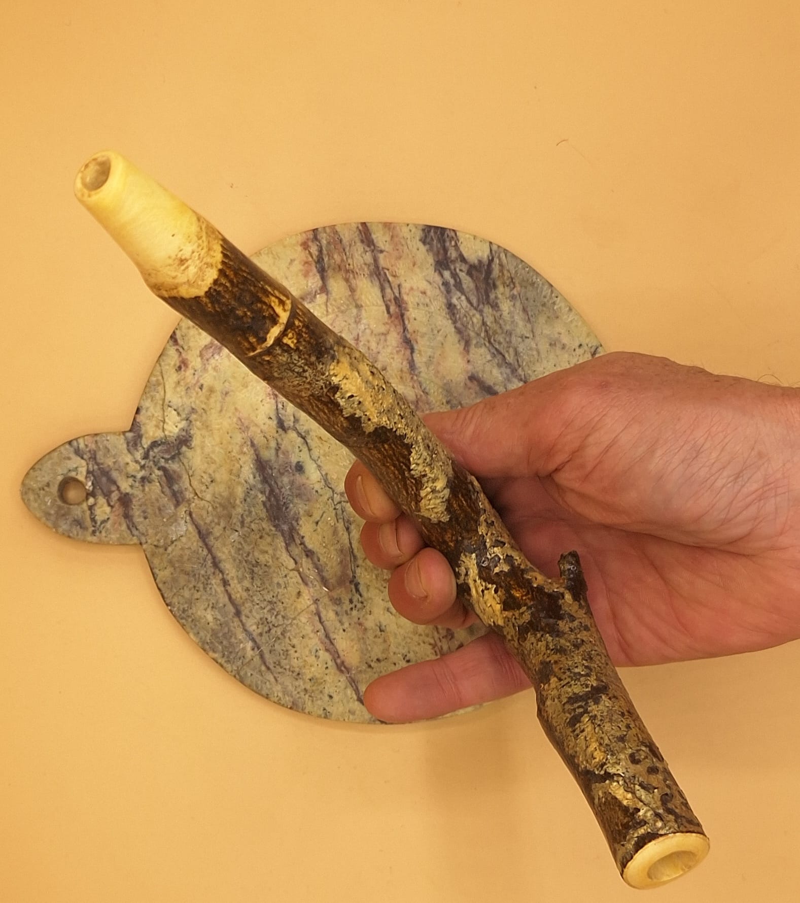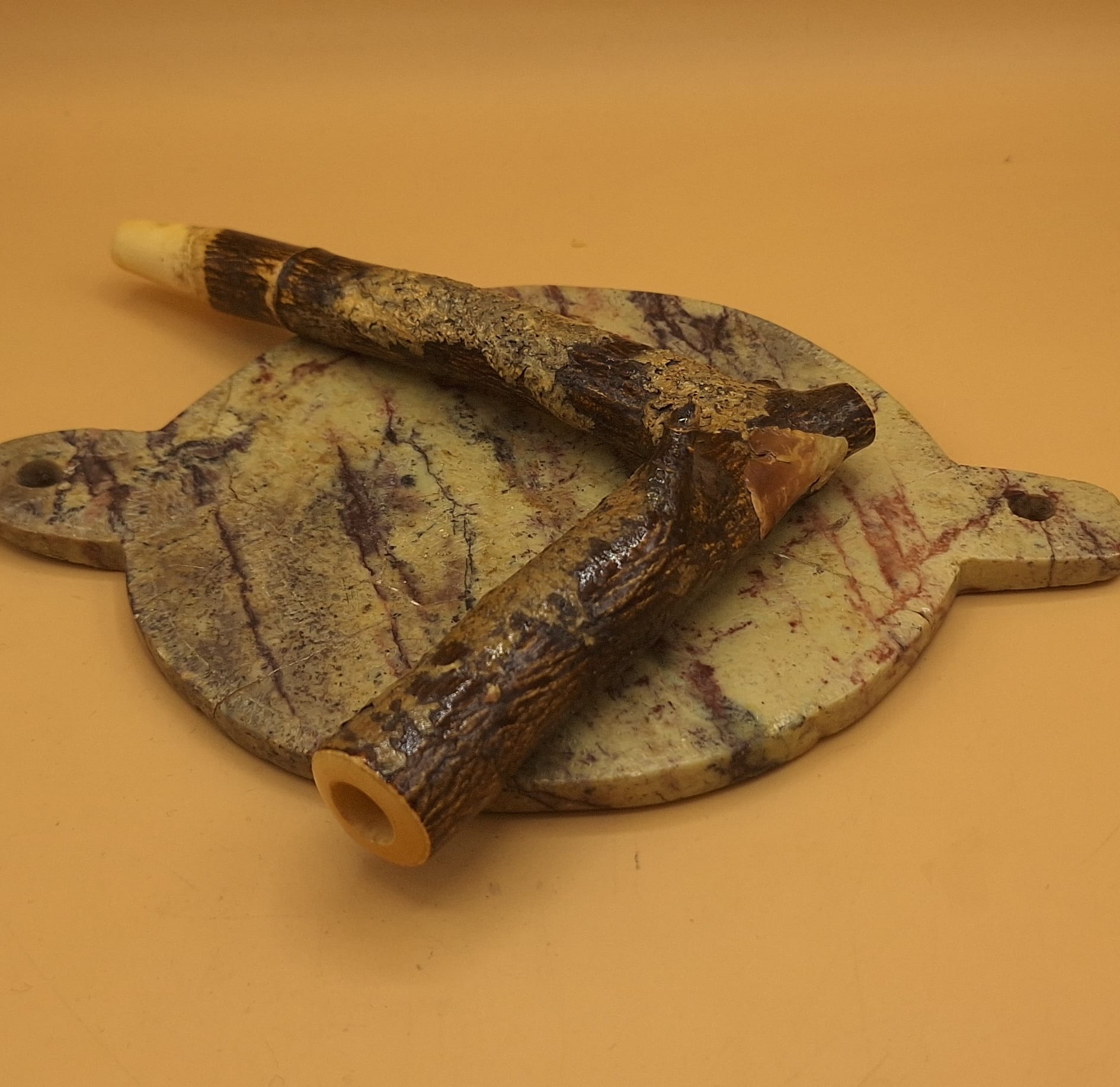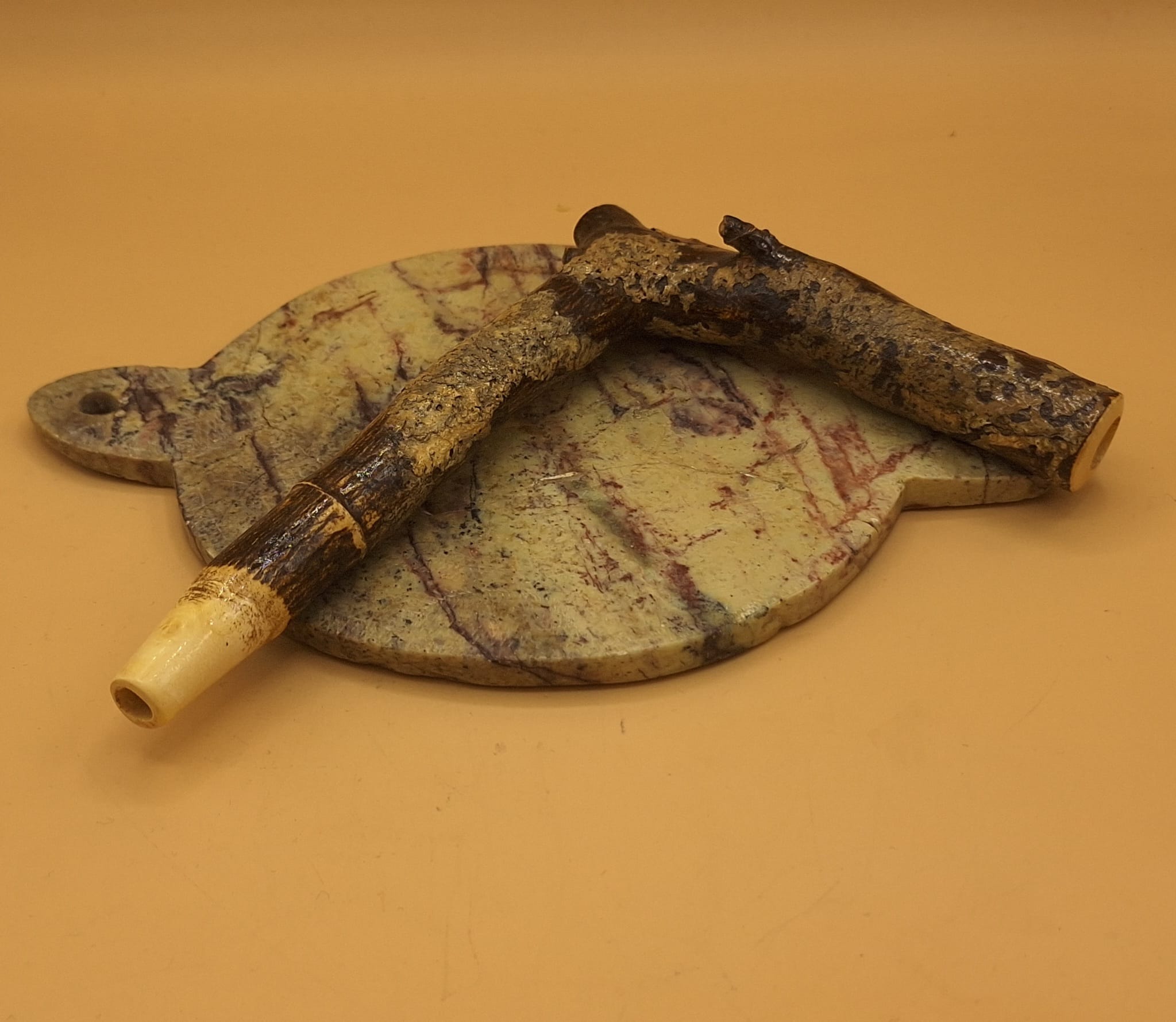 The Tepi and Kuripe that Paco makes all have a very organic feel to it. All pieces have their character. He uses various techniques to make very clean and solid connections between the sections of his shamanic instruments. A common problem with a V-shaped Kuripe is that some Snuff gets trapped in the bottom of the V. Paco solution is to create a bottom inside the Kuripe that has a curved shape. In this way, you will always blow all snuff out of your blowpipe. His pieces are very powerful. In general, the blow strength of his blowpipes is quite high and assures a deep entering of the Rapé. These are all high-quality pieces that will last a very long time.